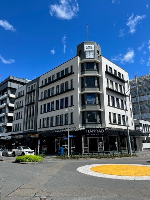 Freshly repainted, the Caro Tower in Hamilton’s CBD stands out with its revitalized exterior. This project brings a modern touch to one of the city’s iconic buildings, enhancing its visual appeal while maintaining its historic charm.
