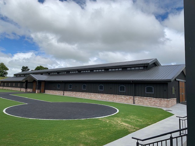 This architecturally designed, state-of-the-art stables complex with two new stables and 48 boxes includes a connected and fully-equipped function and entertainment centre with floor-to-ceiling windows offering picturesque views of the horse parade area and farm.