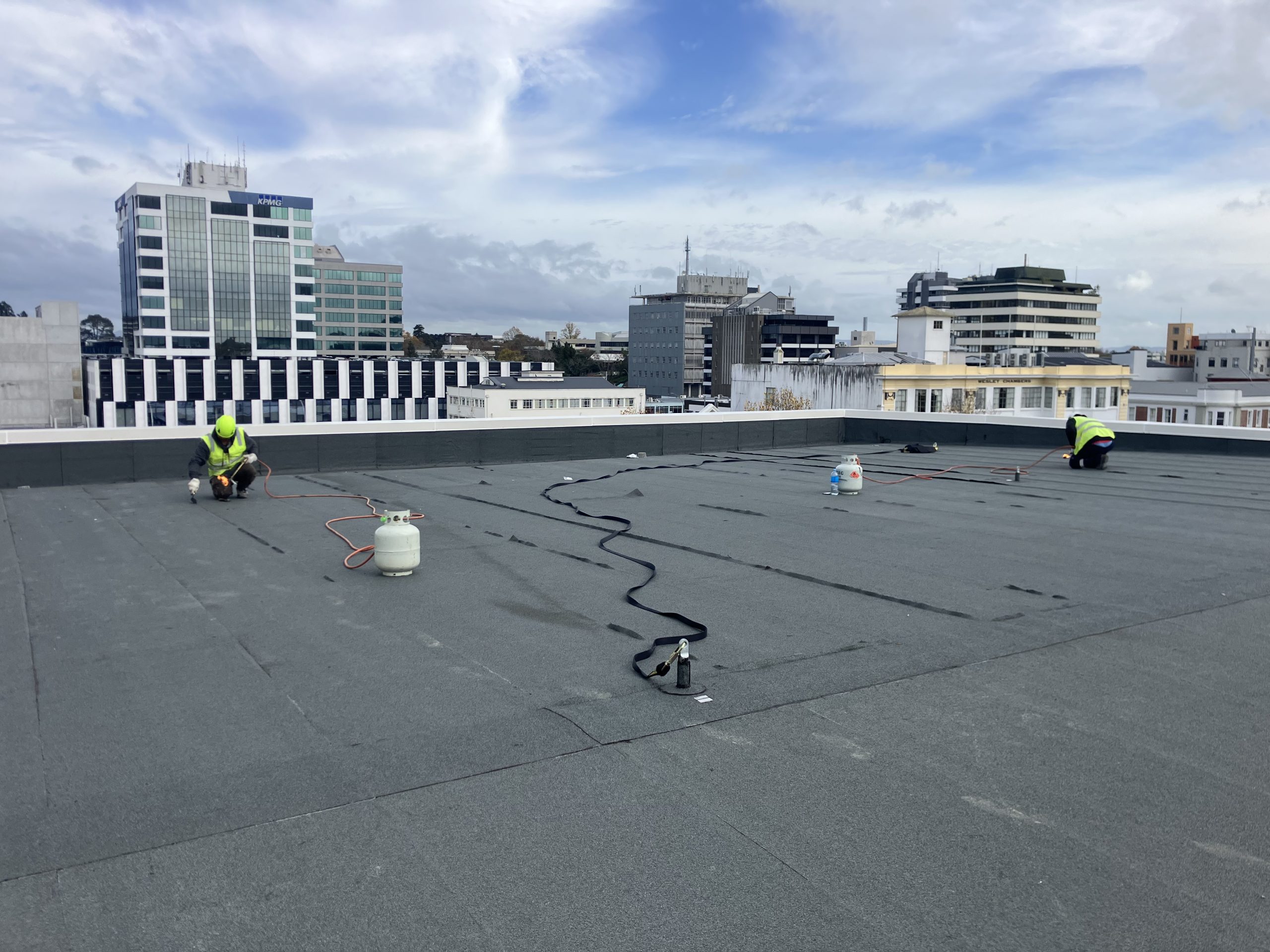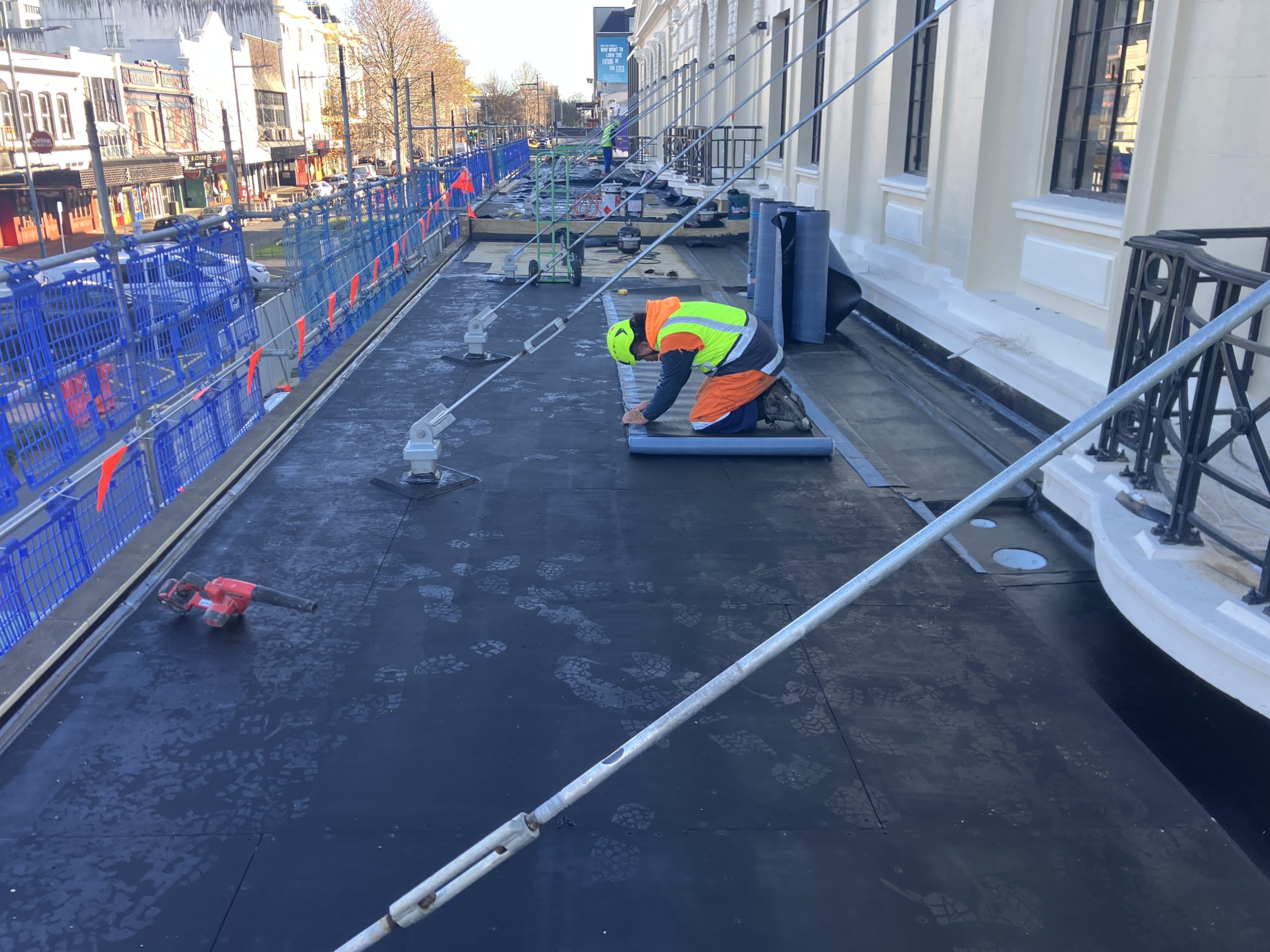 Over the past 18+ months, we’ve had a peak crew of 15 on site and installed approximately 3,000 rolls of membrane.
